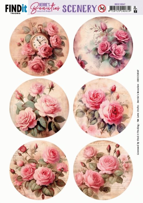 Push-Out Scenery - Berries Beauties - Pink Roses - Round