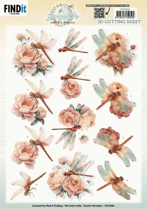 3D Cutting Sheet - Berries Beauties - Dragonflies - Blush