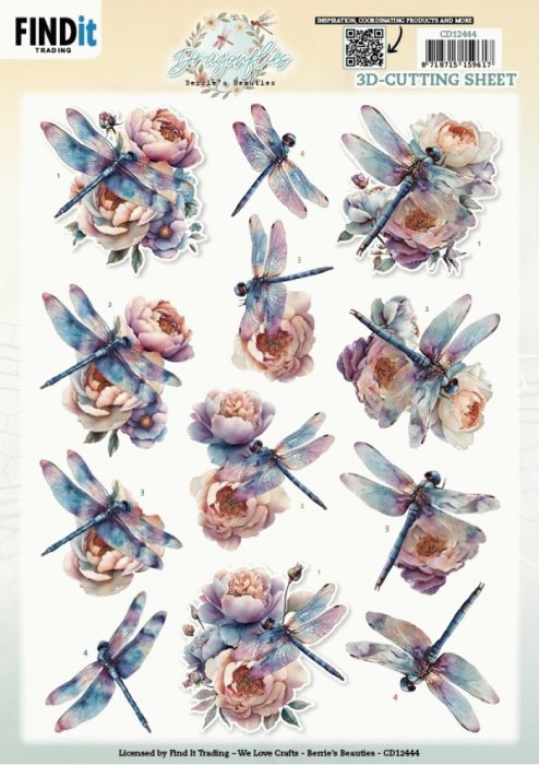 Geef je creaties een elegante, natuurlijke uitstraling met deze 3D-cutting sheet uit de Dragonflies collectie. Het stansvel bevat verfijnde illustraties van sierlijke libellen in combinatie met romantische bloemen, uitgevoerd in zachte pastel- en aquatinten. Perfect voor het maken van kaarten, scrapbooking en andere creatieve projecten. Eenvoudig uit te drukken zonder schaar en ideaal om moeiteloos een prachtig 3D-effect te creëren. -