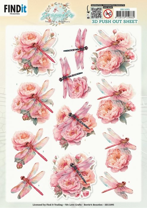 3D Pushout Sheet - Berries Beauties - Dragonflies - Pink