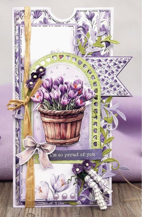 Linnenkarton pakket, passend bij de collectie First Blossoms . 20 vel + 1 bonus, 21 x 29.7 cm, 240 grams. Pakket bevat 5 kleuren x 4 vel: violet, groen, chocoladebruin, basilicum, amethyst, bonus: glitter Copper -