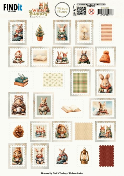 Vier de magie van de winter met deze betoverende Postage Stamps uit de Berrie’s Beauties – Winter Bunnies serie! Dit push-out stansvel bevat lieve illustraties van konijntjes, winterse landschappen, besneeuwde takken en zachte pastelkleuren. Perfect voor het maken van kerst- en winterkaarten, scrapbooking of sfeervolle decoraties. Geen schaar nodig – gewoon uitdrukken en gebruiken! -