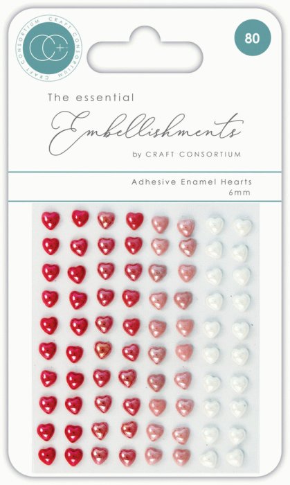 The Essential Embellishments - 80 premium adhesive Enamel Hearts in assorted colours.
