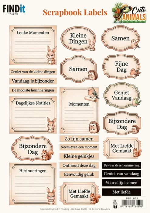 Berrie's Beauties Scrapbook Labels - Cute Animals - NL