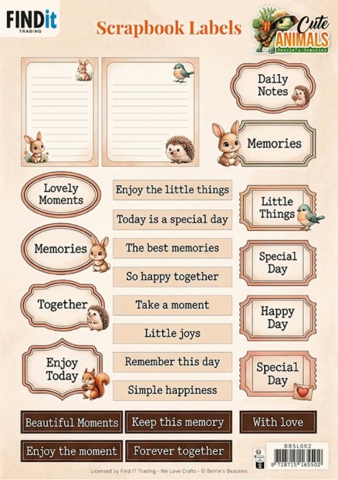 Berrie's Beauties Scrapbook Labels - Cute Animals - ENG