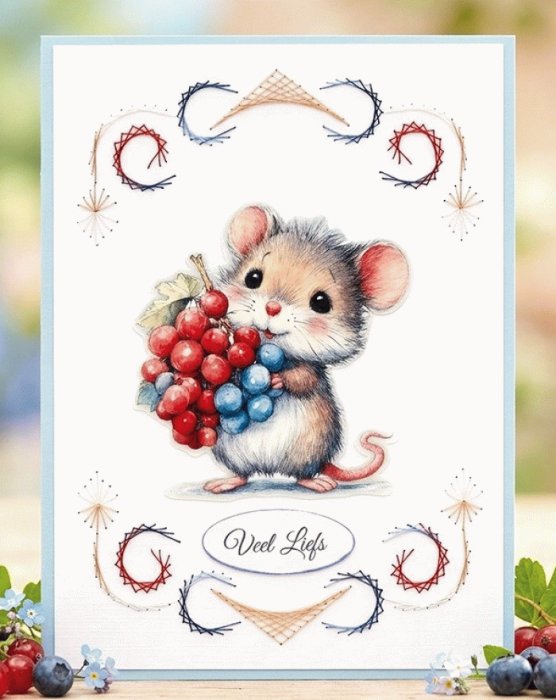 Met borduurwerk op gekleurd karton geef je een andere dimensie aan je zelfgemaakte kaarten. Elke set bestaat uit vier basiskaarten, vier voorgeprikte patroonkaarten, vier 3D-afbeeldingen en 4 kleuren Stitch and Do borduurgaren.