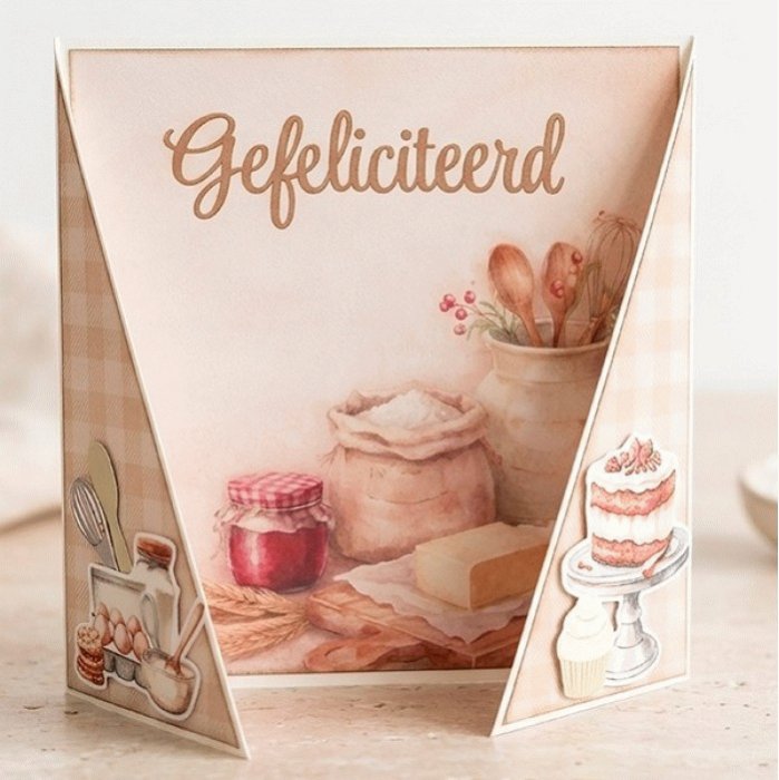De **Scenery Push Out – Homestead Bakery** is een warm en sfeervol elements-vel vol heerlijke bakillustraties, uitgevoerd in zachte, huiselijke tinten en een knusse “homestead” uitstraling. Dit vel ademt gezelligheid, nostalgie en het gevoel van versgebakken lekkers – perfect voor creatieve projecten met een warme, ambachtelijke look. De gedetailleerde illustraties van taarten, gebak, koffie en bakaccessoires laten zich prachtig combineren en zijn ideaal voor het creëren van uitnodigende kaarten, keuken-thema creaties en gezellige decoratieve projecten. Alle afbeeldingen zijn **voorgestanste elementen** , waardoor je ze eenvoudig uit het vel drukt zonder te knippen. De hoogwaardige kleurendruk en zorgvuldig afgestemde kleuren zorgen voor een verzorgde en luxe afwerking. Gebruik de elementen als smakelijke blikvanger op je kaart, combineer ze met rustige achtergronden of stel een complete bak-scène samen met taart, koffie en bakgerei. Een veelzijdig elements-vel dat geschikt is voor zowel snelle projecten als meer uitgebreide, gelaagde ontwerpen. **Perfect voor:** • Kaarten met bak-, keuken- en gezelligheidsthema • Snelle projecten zonder knippen • Creaties met een warme, huiselijke en nostalgische uitstraling