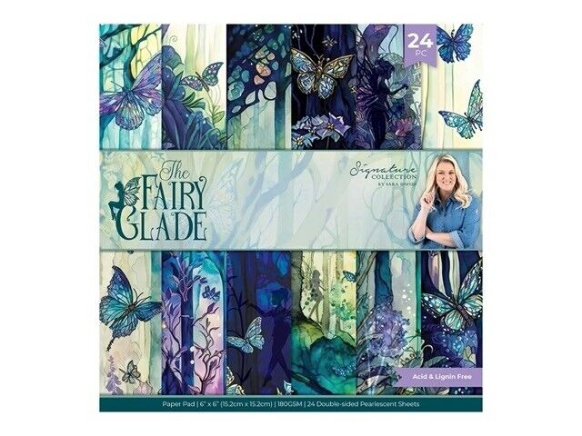 Elk paperpad bevat 24 vellen versierd met schaduwrijke bossen, stemmige glades en delicate vlinders. De dubbelzijdige vellen hebben een luxe, parelmoerachtige afwerking voor een glinsterend effect op bijvoorbeeld je kaarten, scrapbooking en op maat gemaakte geschenkdozen en tassen.