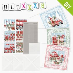 Vele Bloxxx maken samen één 3D-afbeelding. Door losse blokjes op uitgekiende plaatsen op de voorgedrukte afbeelding te plaatsen creëer je diepte op de kaart. Werk de kaart af met Shiny Details voor een extra chic resultaat. De set bevat alle benodigdheden voor het creëren van 3 vierkante kaarten. 3 voorgedrukte wenskaarten, voldoende losse Bloxxx, Shiny Details, foamblokjes en 3 enveloppen. Dankzij het voorgedrukte patroon kunnen de kaarten gemaakt worden zonder gebruik van een lichtbak.