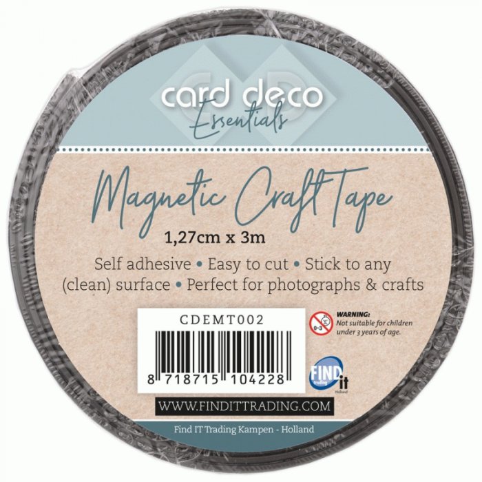 Self-adhesive magnetic tape. Sticks to any (smooth and clean) surface. Size 1.27 cm x 3 meters.