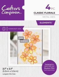 CC - Elements - Illusion Film Snijmal - Classic FloralsDeze verpakking bevat 4 snijmallen om traditionele minimalistische bloemvormen uit te snijden.Speciaal ontworpen voor gebruik met onze innovatieve Illusion Film.Afmeting van de grootste snijmal is 2.1″x2.1″ (5.3x5.3 cm).Maak prachtige middenstukken met een glas-in-lood effect met de Crafter's Companion Illusion Film snijmallen sets. Speciaal ontworpen voor het gebruik met onze innovatieve Illusion Film. Leg uw uitgesneden vormen over de film om golvende, iriserende kleuren daarna erdoorheen te laten schijnen. Versier dus kaarten en creaties met een magische 3D effect of voeg een lusje lint of touw toe om daarmee een glowing raamhanger te maken.Natuurlijke schoonheid. De Illusion Film Snijmal - Classic Florals set bevat vier stansen om traditionele minimalistische bloemvormen uit te snijden. De grootste snijmal heeft een afmeting van 2.1″x2.1″ (5.3x5.3 cm). Dus gebruik elke bloem afzonderlijk of bouw daarna een lief ruikertje om je diverse creaties mee te versieren.Iriserende gloed. Deze stansset is dus speciaal ontworpen voor het gebruik met de Crafter's Companion Illusion Film. Dit is een film met een glinsterend, iriserend effect. De film is hittebindbaar en kan worden uitgestanst. Gebruik één vel afzonderlijk of verbind er een paar met warmte aan elkaar voor een stevigere afwerking. Leg tot slot een laag achter het gestanste ontwerp voor een prachtige iriserende gloed die rimpelt en verandert naarmate het licht vangt.Mix en match. Illusion Film is hittehechtbaar, zodat u daarmee verschillende bladkleuren kunt combineren en aan elkaar plakken om een uniek, veelkleurig effect te creëren. Of plak dezelfde kleur samen voor een intensere kleur. Ontdek het volledige assortiment Crafter's Companion Illusion Film om daarmee uw perfecte kleurencombinatie te vinden!Je hebt dus geen schaar meer nodig! Met het stansen ontstaan delicate uitgesneden designs met een mate van delicatesse wat simpelweg niet met een schaar of een hobbymes kan. Creëer eenvoudig uw platencombinatie met behulp van de handige Sandwichgids in de handleiding en voer deze door uw stansmachine.Probeer eens de Crafter's Companion Black Cardstock (CC-MATTBLK) voor het uitstansen om daarmee de glinsterende Illusion Film echt helder te laten schijnen. -