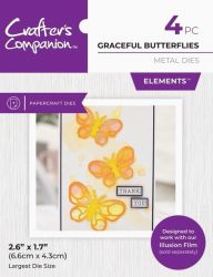 CC - Elements - Illusion Film Snijmal - Graceful ButterfliesDeze verpakking bevat 4 snijmallen om twee vlindervormen met sierlijke vleugels uit te snijden.Speciaal ontworpen voor gebruik met onze innovatieve Illusion Film.Afmeting van de grootste snijmal is 2.6″x1.7″ (6.6x4.3 cm).Maak prachtige middenstukken met een glas-in-lood effect met de Crafter's Companion Illusion Film snijmallen sets. Speciaal ontworpen voor het gebruik met onze innovatieve Illusion Film. Leg uw uitgesneden vormen over de film om golvende, iriserende kleuren daarna erdoorheen te laten schijnen. Versier dus kaarten en creaties met een magische 3D effect of voeg een lusje lint of touw toe om daarmee een glowing raamhanger te maken.Fladderende elegantie. De Illusion Film Snijmal - Graceful Butterflies set bevat vier stansen om twee vlindervormen met sierlijke vleugels uit te stansen. De grootste snijmal heeft een afmeting van 2.6″x1.7″ (6.6x4.3 cm). Dus het perfecte formaat om kaarten, geschenkdozen, tassen en meer te versieren.Iriserende gloed. Deze stansset is dus speciaal ontworpen voor het gebruik met de Crafter's Companion Illusion Film. Dit is een film met een glinsterend, iriserend effect. De film is hittebindbaar en kan worden uitgestanst. Gebruik één vel afzonderlijk of verbind er een paar met warmte aan elkaar voor een stevigere afwerking. Leg tot slot een laag achter het gestanste ontwerp voor een prachtige iriserende gloed die rimpelt en verandert naarmate het licht vangt.Mix en match. Illusion Film is hittehechtbaar, zodat u daarmee verschillende bladkleuren kunt combineren en aan elkaar plakken om een uniek, veelkleurig effect te creëren. Of plak dezelfde kleur samen voor een intensere kleur. Ontdek het volledige assortiment Crafter's Companion Illusion Film om daarmee uw perfecte kleurencombinatie te vinden!Je hebt dus geen schaar meer nodig! Met het stansen ontstaan delicate uitgesneden designs met een mate van delicatesse wat simpelweg niet met een schaar of een hobbymes kan. Creëer eenvoudig uw platencombinatie met behulp van de handige Sandwichgids in de handleiding en voer deze door uw stansmachine.Probeer eens de Crafter's Companion Black Cardstock (CC-MATTBLK) voor het uitstansen om daarmee de glinsterende Illusion Film echt helder te laten schijnen. -