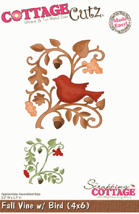 Scrapping Cottage Die - CottageCutz Fall Vine with Bird (4x6)