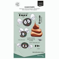 Deze A6-set bevat 17 clear stamps met strontvliegen. De clear stamps werken perfect in combinatie met een stempelplatform, acrylblok of Tack ‘N Peel vellen (05TP001) en zijn geschikt voor verschillende soorten inkt, zoals dye inkt, pigment inkt en inkten op waterbasis. Ze zijn eenvoudig schoon te maken en blijven dankzij het duurzame fotopolymeer ook na veelvuldig gebruik in topconditie.