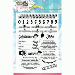 Eén sheet boordevol transparante (tekst)stempels met spreuken en iconen. Maak de stempel schoon met water en een beetje afwasmiddel of met een snoetendoekje.