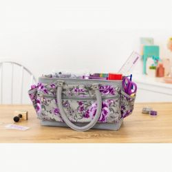 Tote Bag met 2 handgrepenZakken aan de zijkantZakken met ritsAfmetingen ca.18,5 cm x 37cm x 27cmBewaar uw hobbymateriaal in stijl met deze prachtige nieuwe opbergtassen van Crafter's Companion! In een opvallend paars met grijze bloemenprint.